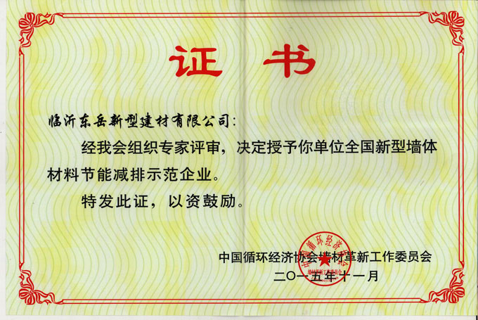 11月12日~13日,全國(guó)墻材革新工作委員會(huì)在廣東佛山組織召開(kāi)了2015年年會(huì)。會(huì)上、臨沂東岳新型建材有限公司等第一批145家企業(yè)受到全國(guó)墻材革新工作委員會(huì)的通報(bào)表彰,被授予全國(guó)新型墻體材料節(jié)能減排示范企業(yè),東岳建材作為示范企業(yè)代表進(jìn)行發(fā)言,交流了經(jīng)驗(yàn)。