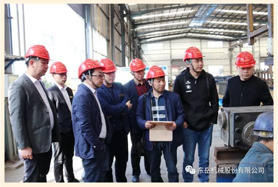 參觀后,公司副總裁鄧奎先生對(duì)東岳機(jī)械目前發(fā)展?fàn)顩r、市場(chǎng)情況進(jìn)行了詳細(xì)介紹,技術(shù)研發(fā)中心分別從工藝規(guī)劃布局、機(jī)械設(shè)計(jì)、電氣控制方面做出了詳細(xì)匯報(bào)。湖南飛山奇集團(tuán)李林輝董事長(zhǎng)、長(zhǎng)樂建材陳時(shí)勇總經(jīng)理肯定了東岳機(jī)械近年高速發(fā)展的成果,希望雙方在未來有更加深入的合作!