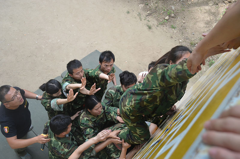 此次拓展主要是以提高員工的綜合素質(zhì)、團隊意識,促進員工的成長為目的。為了使拓展收到切實效果,讓每個參加活動的員工都能在活動中充分體驗和感受活動內(nèi)容凸顯出來的團隊精神,在活動開始時,教練將員工分成了2個隊,每個隊在隊長、隊秘的帶領(lǐng)下確定了自己的隊名、口號、隊歌、隊旗等。在拓展過程中2個隊按照項目要求,堅持不拋棄不放棄的團隊精神,互幫互助,將每個人的智慧、力量融入到團隊中,在大家的共同努力下出色的完成了信任背摔、空中斷橋、真人CS、茫茫人海、勝利墻等一項項艱巨而富有挑戰(zhàn)性的項目。